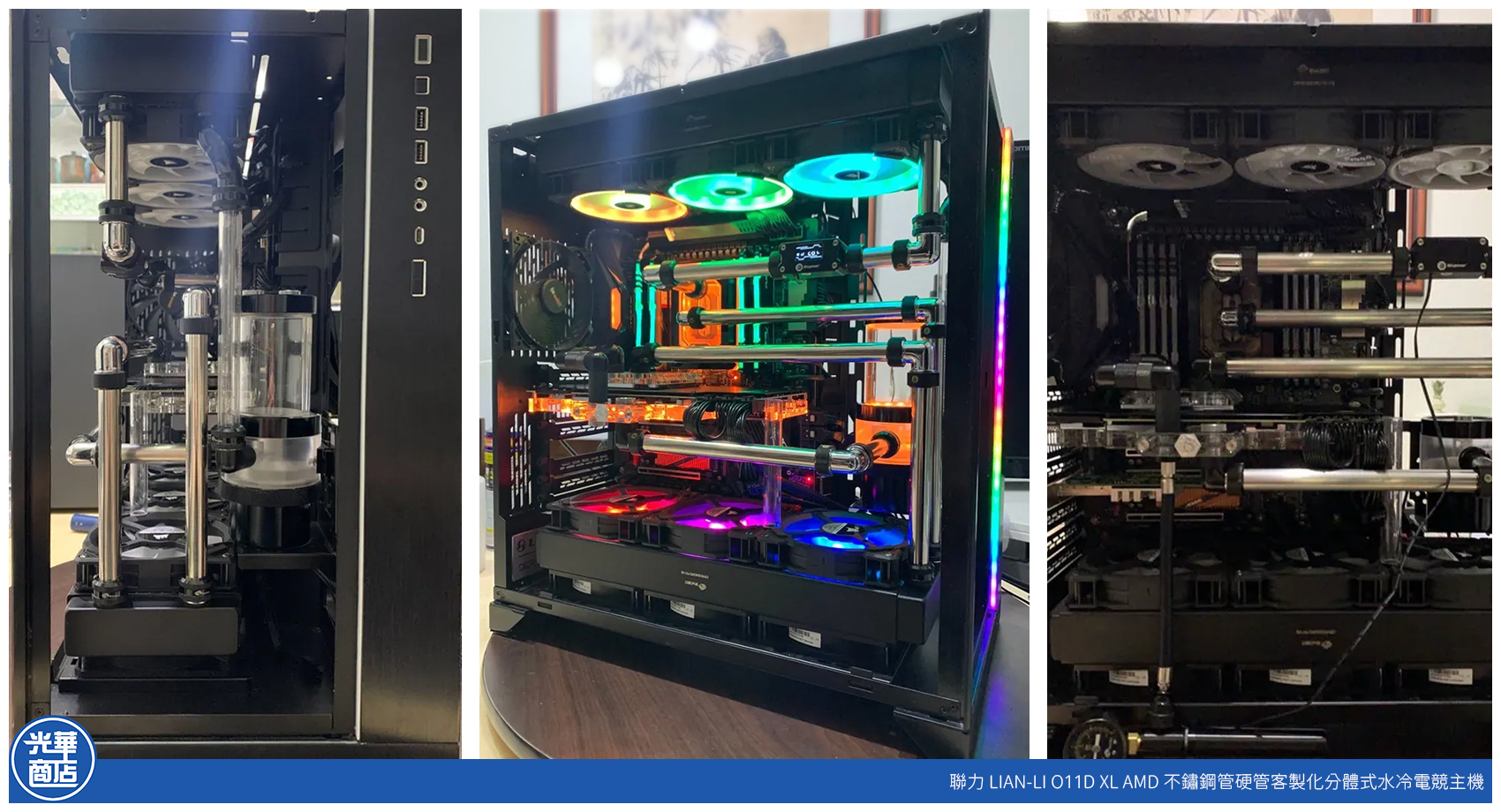 聯力 O11D XL 客製化水冷主機,結合頂級工藝與高效能硬體,打造兼具視覺美學與極致散熱能力的旗艦級系統。透過專業的不鏽鋼管路配置與高階水冷組件(如 Bitspower),整體設計展現冷冽的工業風格,同時確保 AMD 處理器與高階顯示卡在長時間高負載運作下依然維持低溫穩定。