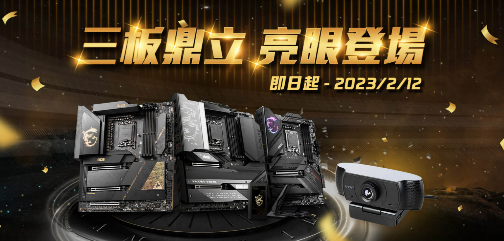 即日起 ~ 2023/2/12 購買 MSI MEG Z790 GODLIKE、MEG Z790 ACE、MPG Z790 CARBON WIFI 主機板任一款,至微星會員中心完成註冊登錄,即可獲得 "MSI FHD ProCam 視訊攝影機一組(限量100組,送完為止)。