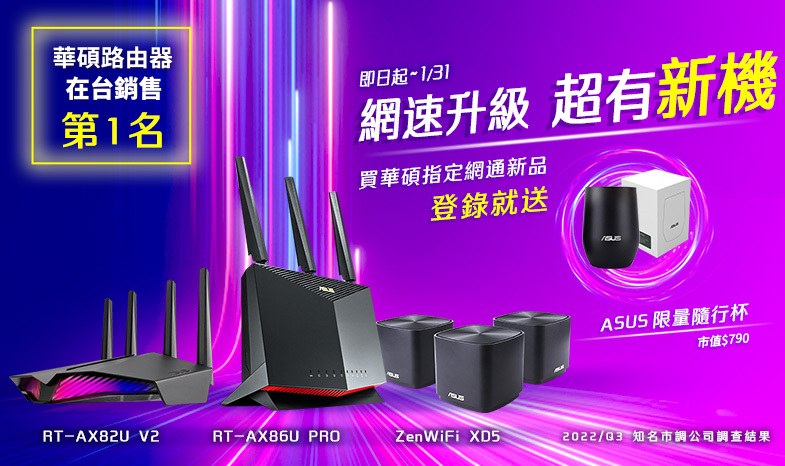 『網速升級 超有新機』買華碩指定路由器,登錄就送『ASUS 限量隨行杯』