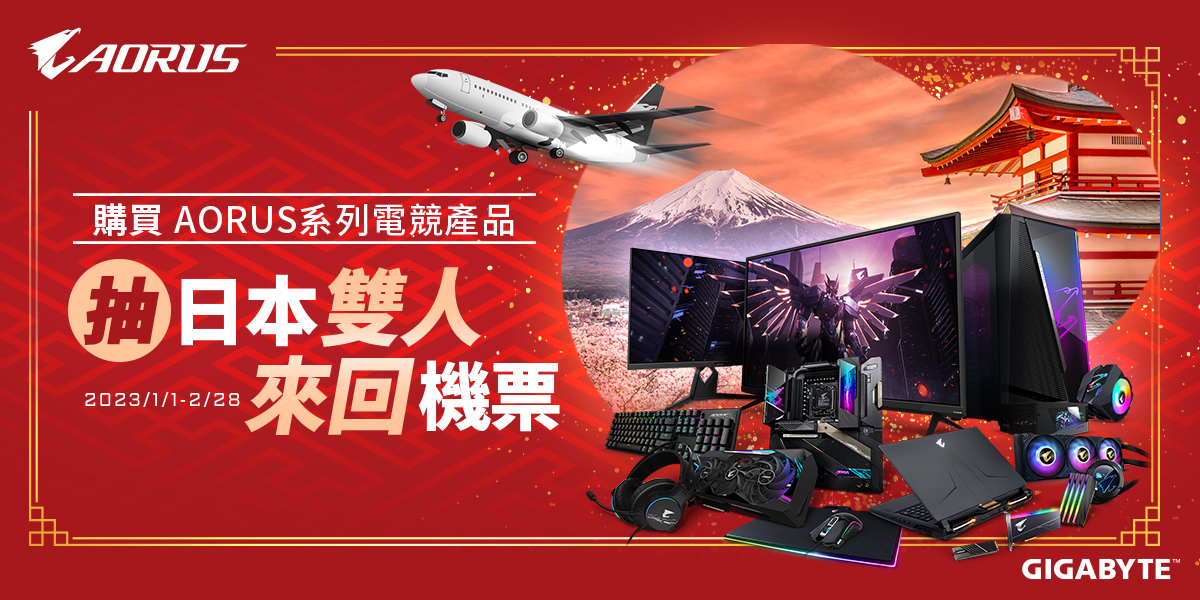 買AORUS全系列電競產品 登錄抽日本雙人來回機票