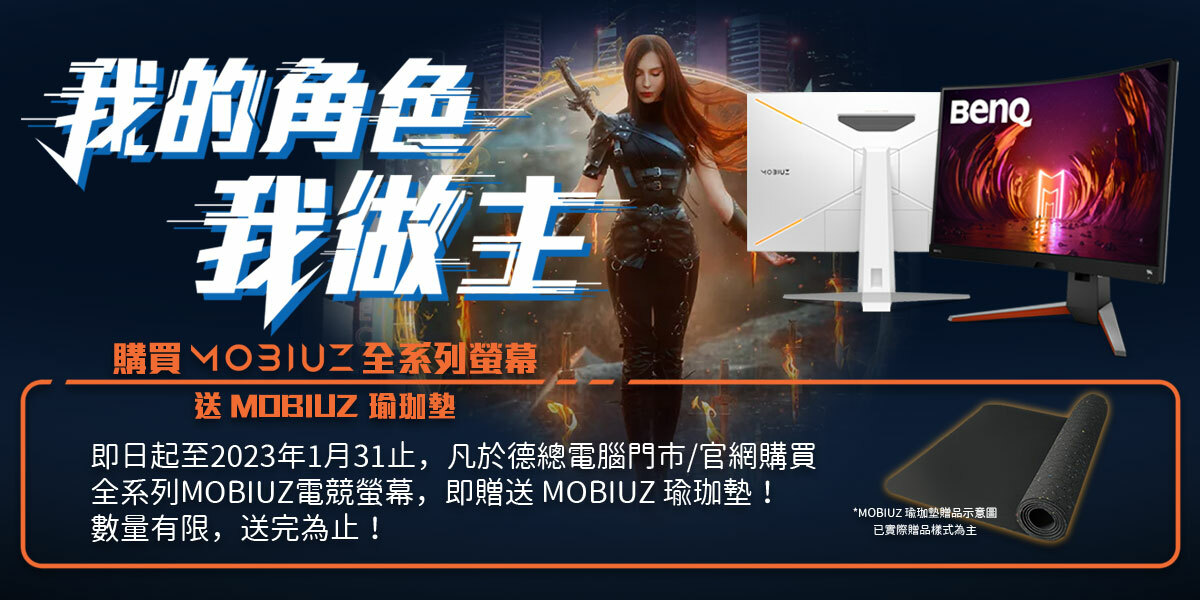凡於活動期間(2023/1/14~1/31)購買BENQ MOBIUZ系列,買就送MOBIUZ瑜珈墊一個。(數量有限,送完為止)