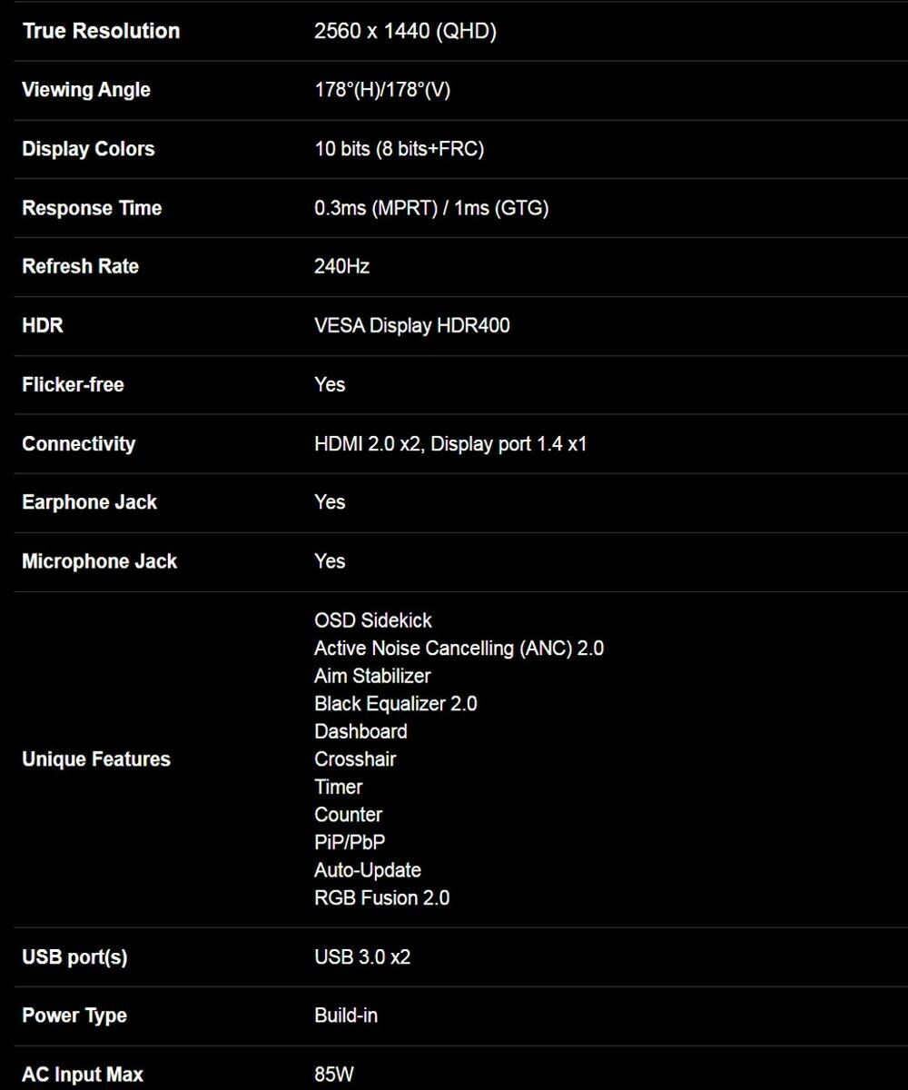 ★240Hz/0.3ms/G-SYNC® Compatible/HDR技術★