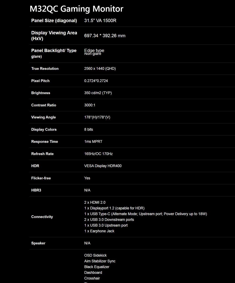 ✅1500R曲面/165Hz/AMD FreeSync/HDR 400