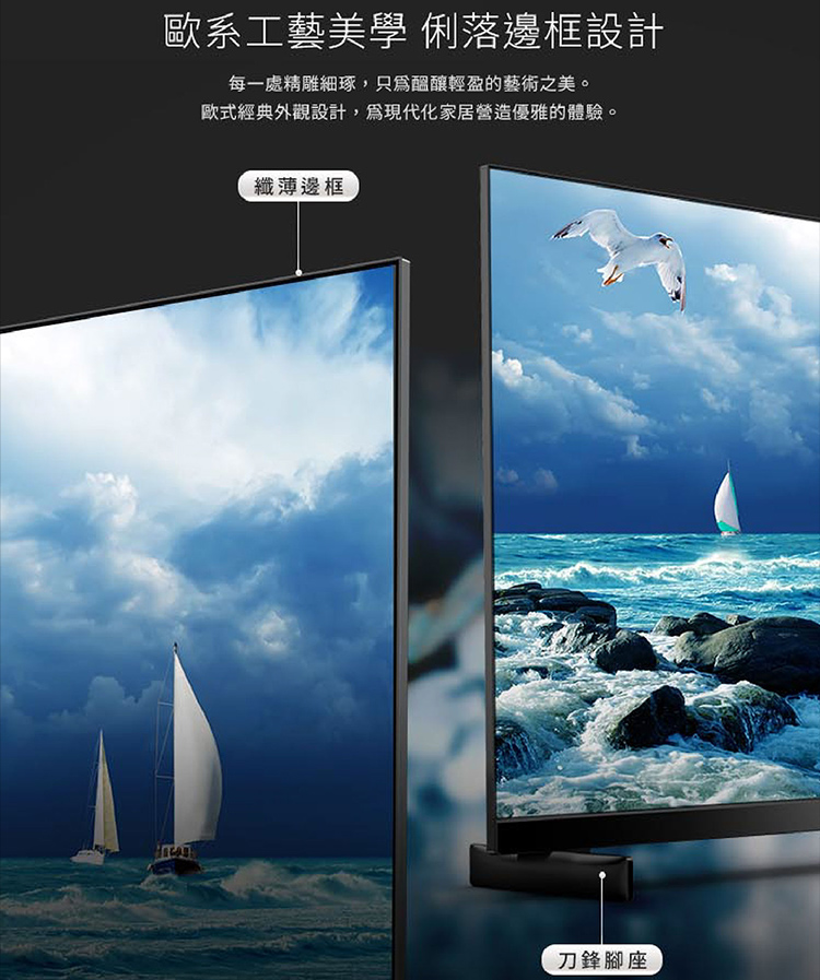 ■ 全面屏超纖薄邊框 刀鋒腳座設計