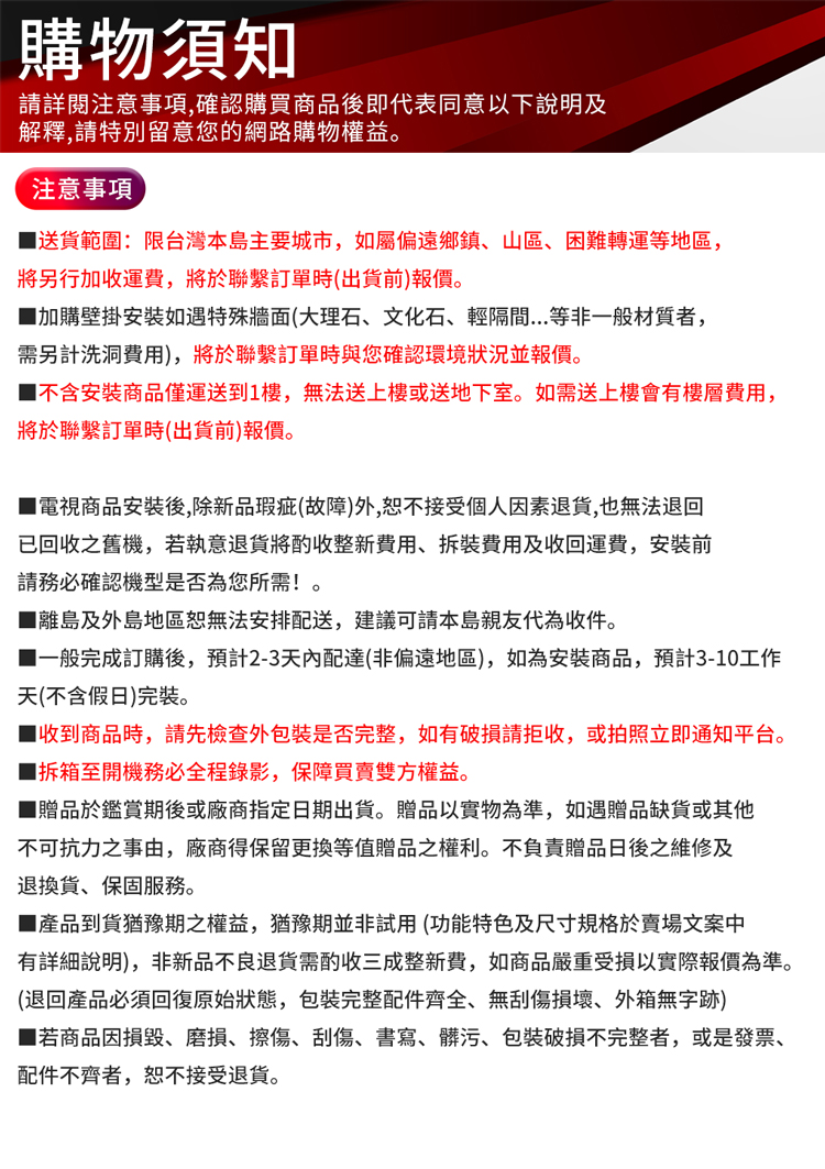 ※本賣場僅配送, 恕不含基本安裝
