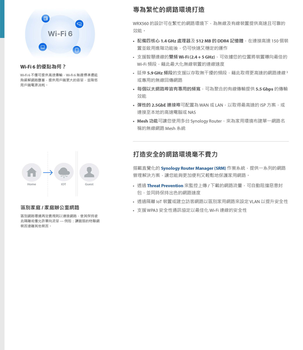 ✅ 高效能: 支援Wi-Fi 6與2.5GbE有線傳輸,並可連接150個裝置。